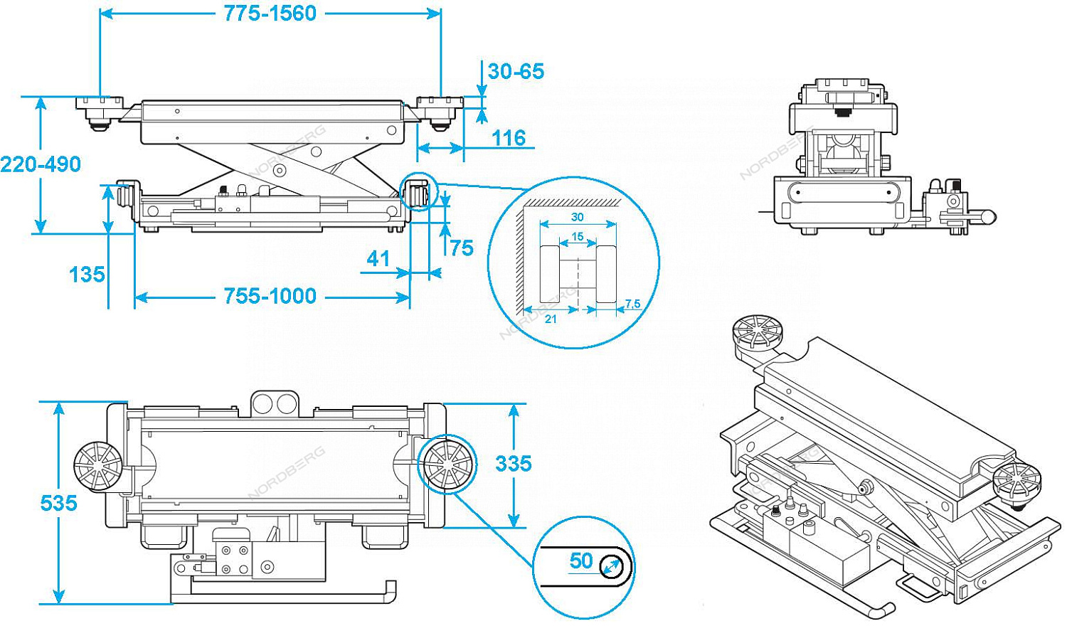 Подходит для четырехстоечных подъемников NORDBERG: 4445J; 4450; 4450J и для ножничных подъемников NORDBERG: N634-4; N634-4,5; N634-4,5; N635-5,5
