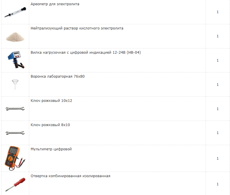 Комплект аккумуляторщика для стартерных и тяговых аккумуляторов К-03