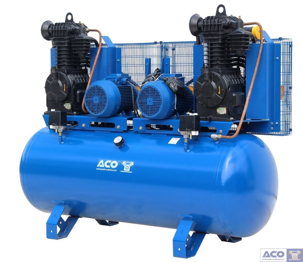 Компрессор поршневой К-22М обладает производительностью 900 л/мин, производительность по нагнетанию составляет 700 л/мин. Максимальное давление составляет 16 атм. Трехфазный электродвигатель мощностью 7,5 кВт напряжением 380 В вращает поршневую головку С415М.01. Контроль давления осуществляет реле Condor MDR. Компрессор устанавливается на горизонтальном ресивере объемом 230 л. Размеры 160 х 65 х 135 см, масса компрессора 275 кг. Сделано в России.