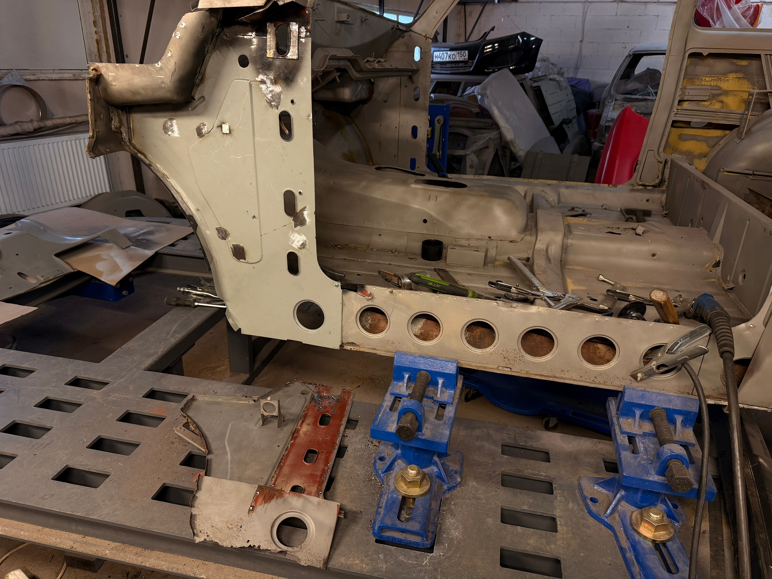 Гидравлический подъемник платформы: плавный подъем и опускание обеспечивают удобство работы с автомобилями различной высоты. Это снижает нагрузку на оператора и ускоряет процесс подготовки к ремонту;