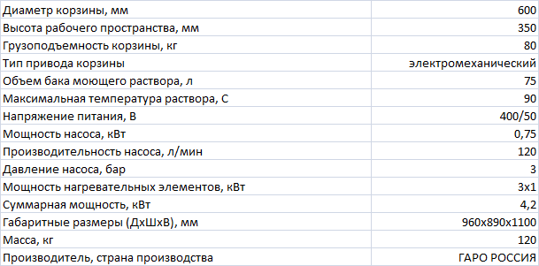 Диаметр корзины, мм 600Высота рабочего пространства, мм 350