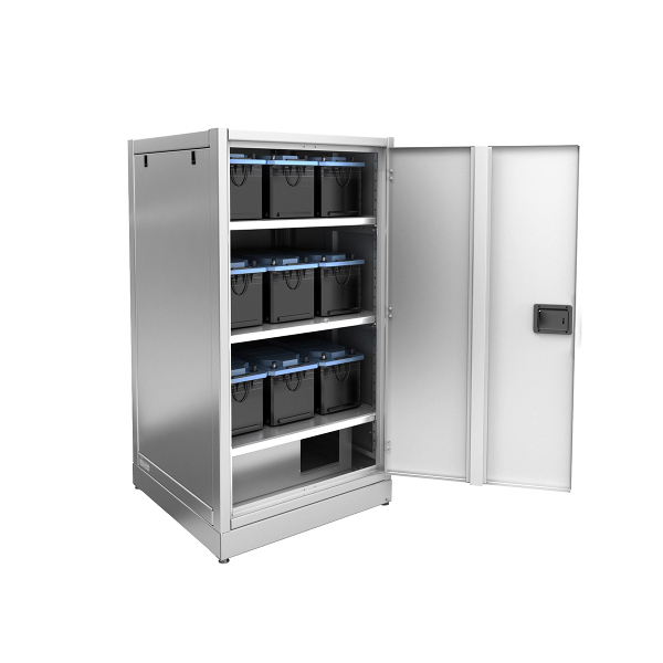 Батарейный шкаф КРОН-ШМА-01.ХХХХ предназначен для размещения или хранения аккумуляторов различного типа и исполнения, а также для их подключения к источникам бесперебойного питания (ИБП), устанавливаемых внутри изделия.