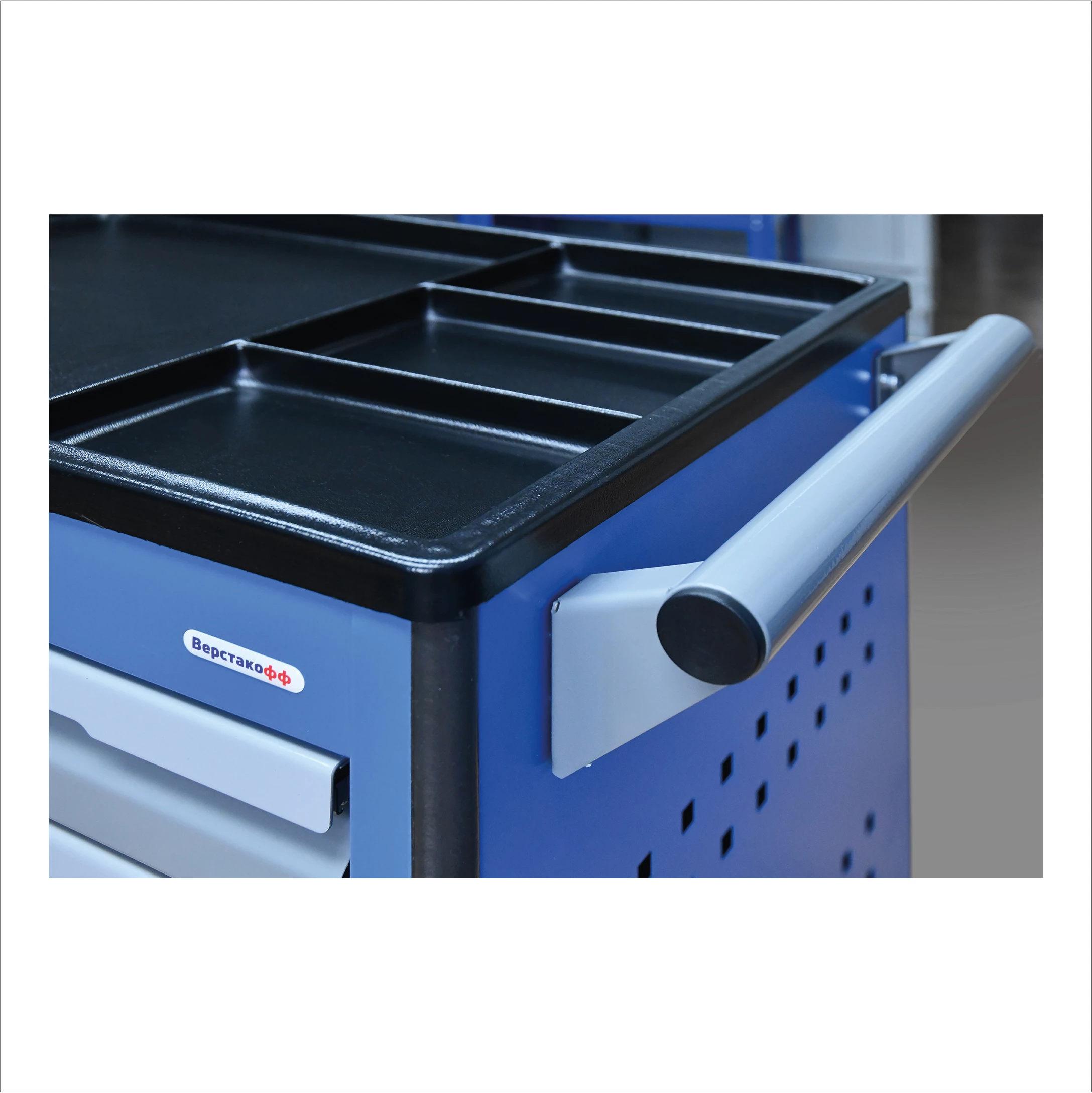 На боковые стенки инструментальной тележки TNC 795.5 нанесена перфорация размером 25х25 мм и диаметром отверстия 8 мм, что позволяет устанавливать на них навесной инструмент или крючки.