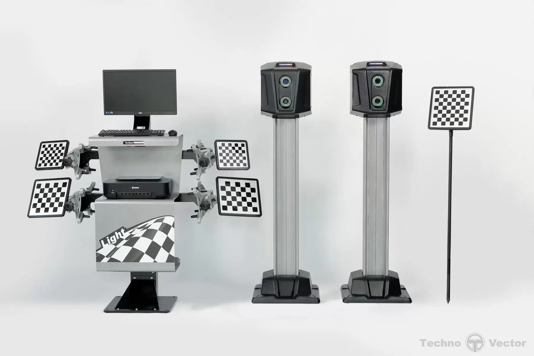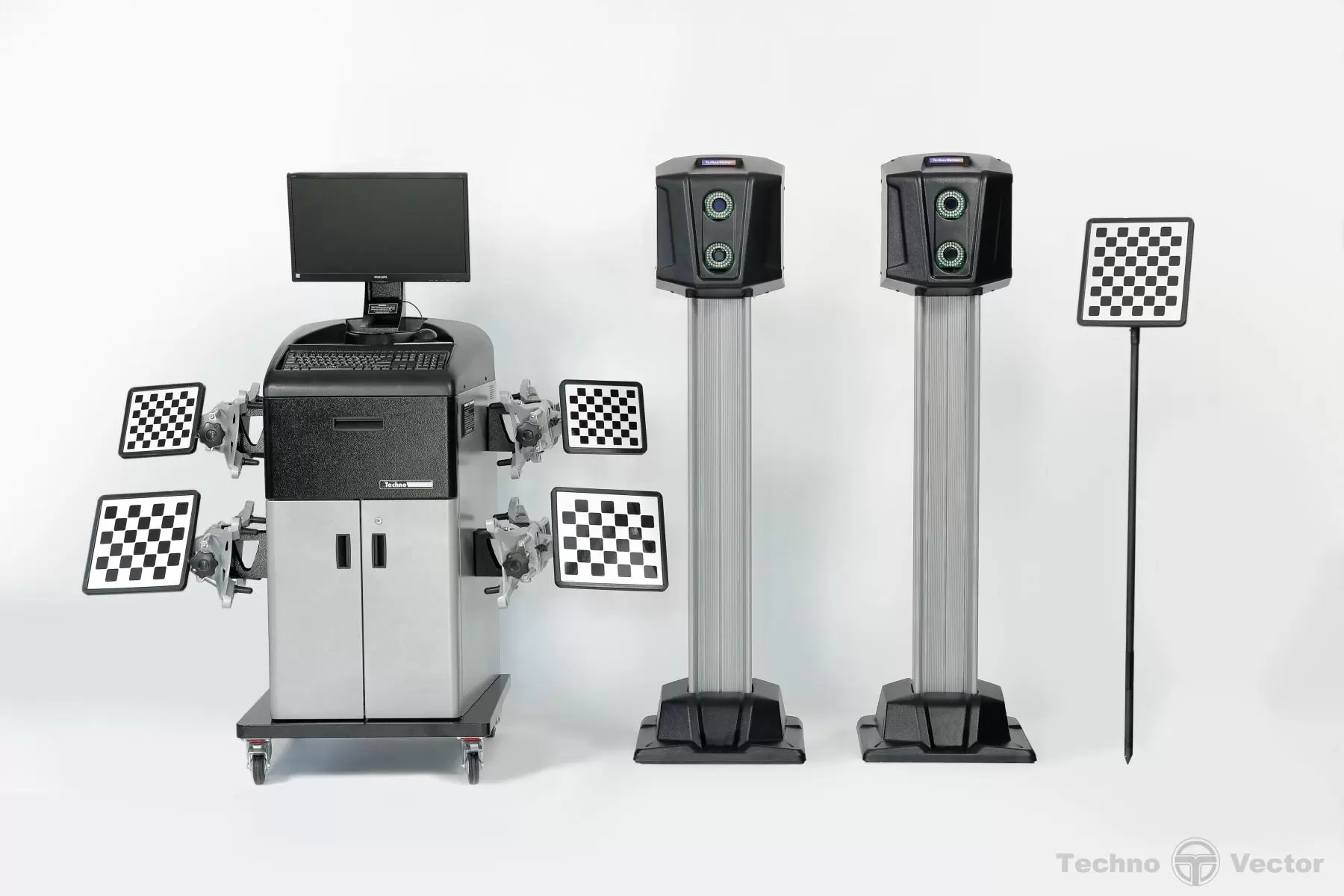 Функционирование приборов основано на измерении угловых параметров, определяющих положение осей и колес автомобиля с помощью видеокамер и плоских мишеней с градиентным рисунком.